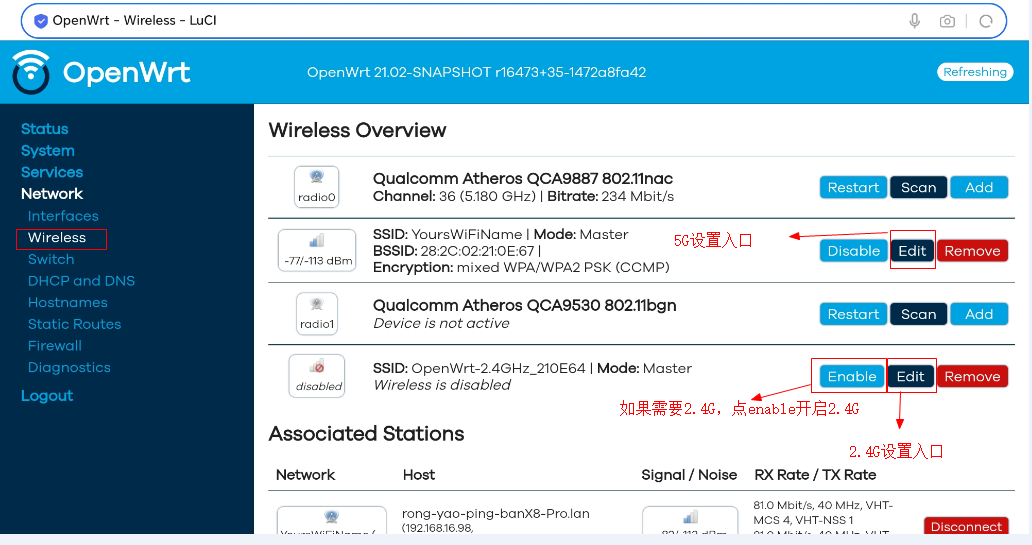 6、选择Wireless,设置开启2.4G或者5G网络,根据实际情况和需求选择。