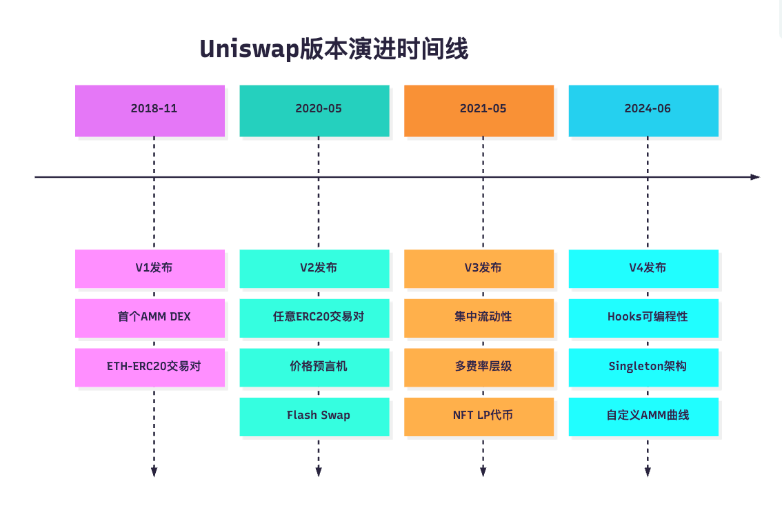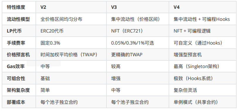 2. Uniswap版本演进:V2 vs V3 vs V4 深度对比