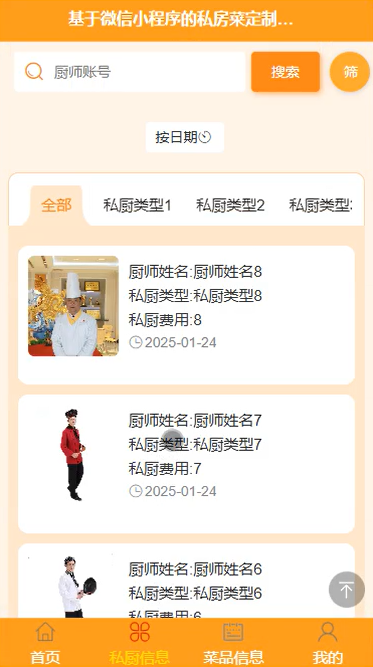 随着人们生活水平提升,对餐饮的个性化需求日益增长,私房菜定制上门服务因新鲜、专属的特点受到青睐,但当前服务对接多依赖零散渠道,存在诸多痛点:用户难以快速找到资质可靠、符合口味的私厨,无法直观了解菜品详情与服务评价;私厨缺乏高效展示推广平台,客源拓展困难,预约管理、菜品宣传等工作繁琐;行业缺乏统一管理载体,服务流程不规范、信息不对称问题影响双方体验。微信小程序凭借无需下载、使用便捷的优势,成为连接供需双方的理想载体,因此开发基于微信小程序的私房菜定制上门服务系统,针对性解决上述痛点,实现服务对接高效化、管理规范化,具有重要现实意义。
