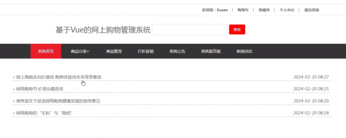 用户可以通过新闻动态来了解系统当中的最新或者是最热点的新闻信息。如下图所示: