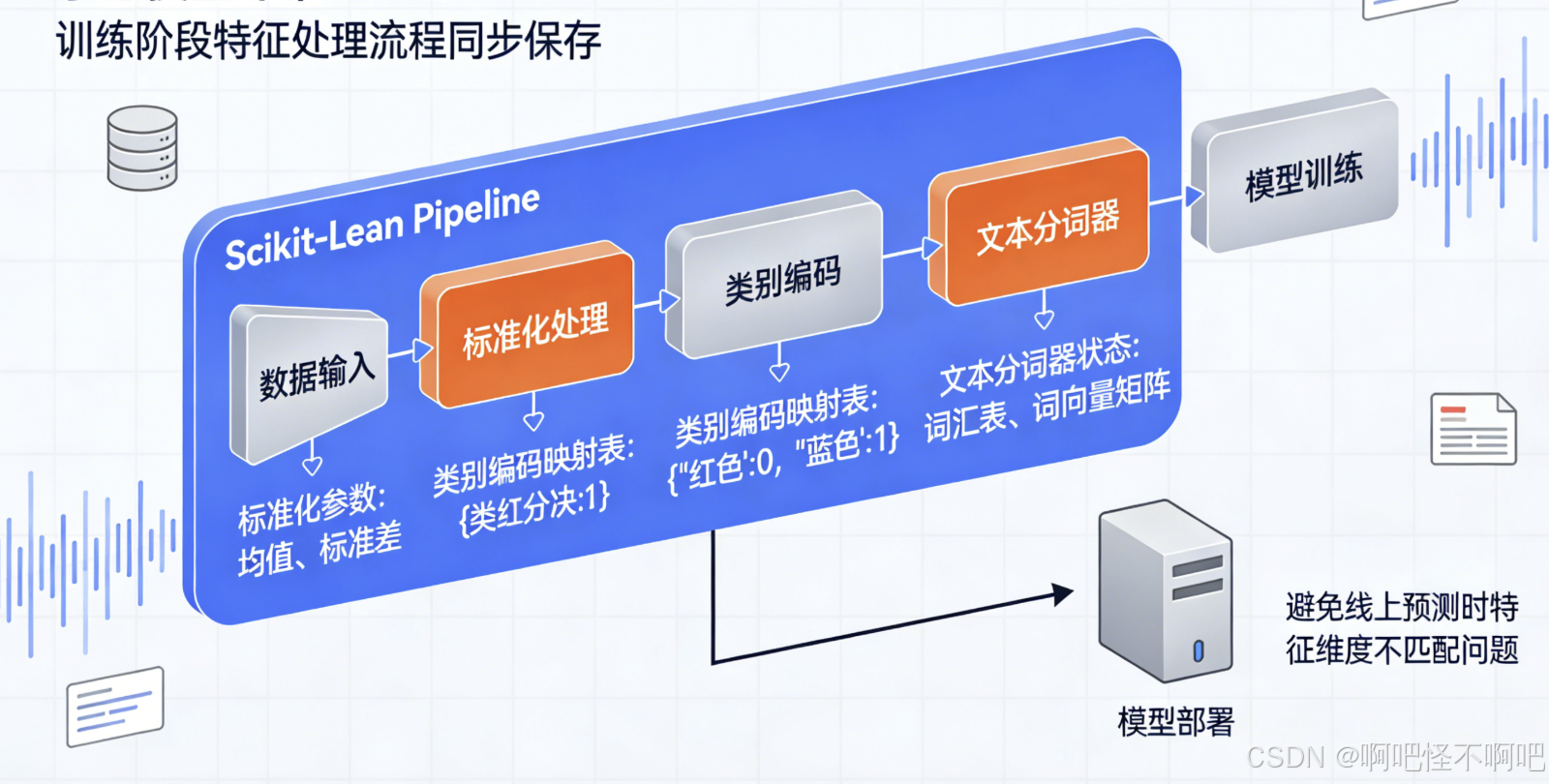 部署时必须将训练阶段的特征处理流程同步保存。典型场景包括标准化参数、类别编码映射表、文本分词器状态等。例如,使用Scikit-learn的Pipeline将预处理步骤与模型打包,避免线上预测时出现特征维度不匹配的问题。