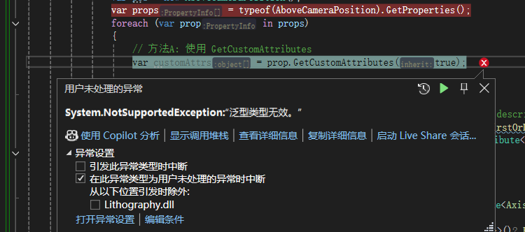 使用GetCustomAttributes获取属性的自定义特性时报错: