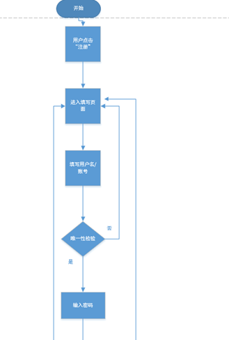 - 填写用户名/账号:需要唯一性校验。如已被占用重新进入信息填写页面。