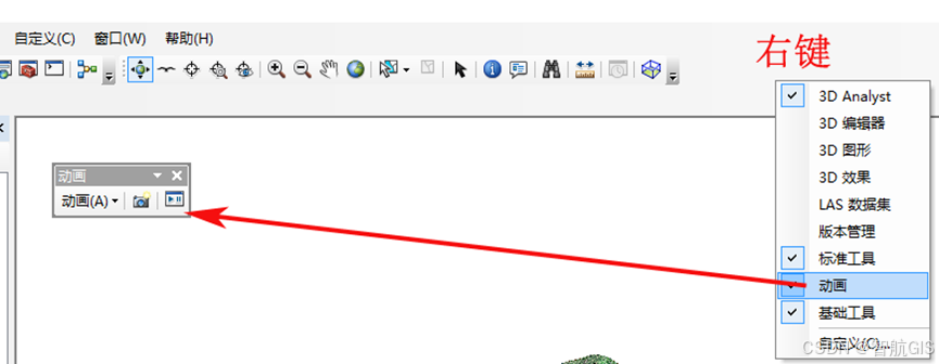 在菜单栏空白处右键---动画,弹出动画工具条。
