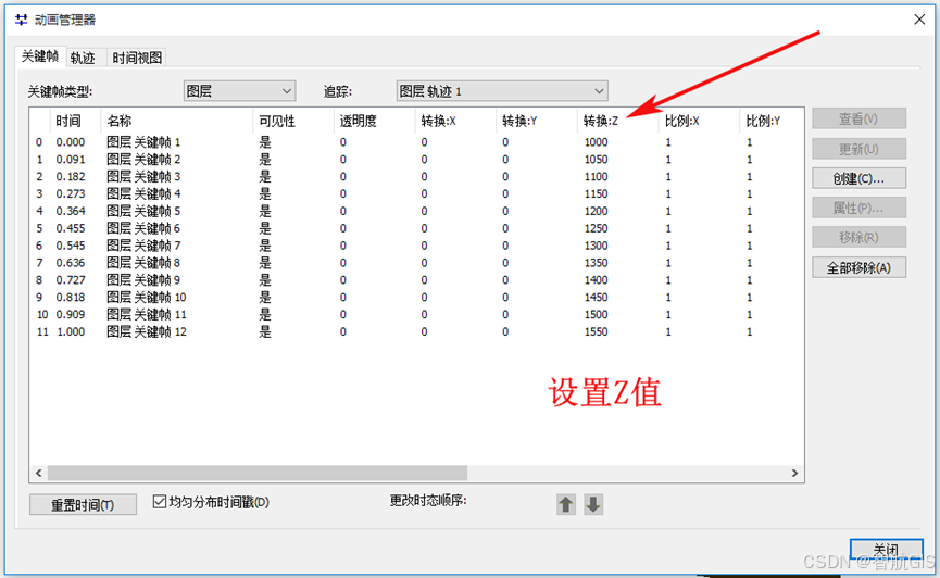 设置关键帧的Z值。注意:值不是统一的,需要根据实际情况调整,多次尝试找到合适的Z值变化范围。