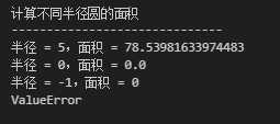 注意点:可以采取try-except使函数变得更加稳健,如果传入的半径为负数,函数应该返回0(或者可以考虑引发一个ValueError)。