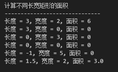 print(f"长度 = {length}, 宽度 = {width}, 面积 = {area}")