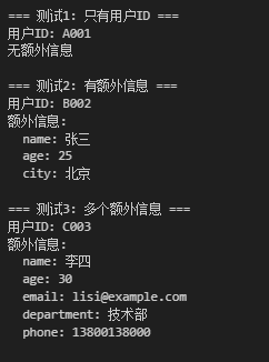 (3)函数打印出用户ID,然后逐行打印所有提供的额外信息(键和值)。