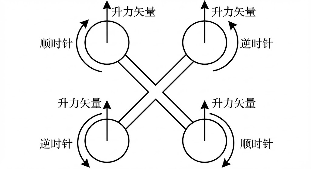// 顺时针旋转的电机,会给机身施加逆时针的扭矩,反之亦然