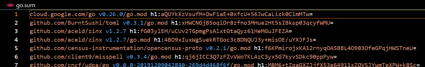 go.sum 文件详细罗列了当前项目直接或间接依赖的所有模块版本 ,并写明了模块版本的 SHA-256 哈希值以备 Go 在今后的操作中保证项目所依赖的那些模块版本不会被篡改 。