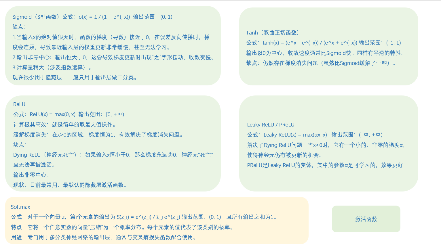 激活函数------很重要,是神经网络的关键,就是在简单的加权求和外面套一个函数,把整个过程从线性变成非线性了。