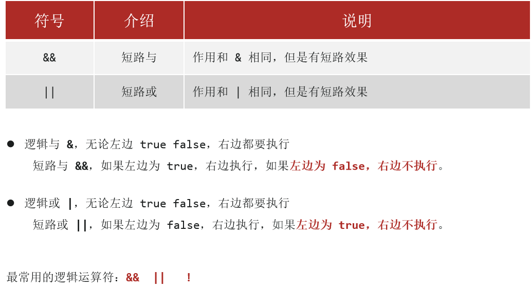& : 没有短路效果,无论符号左边是true还是false,右边都要继续执行.