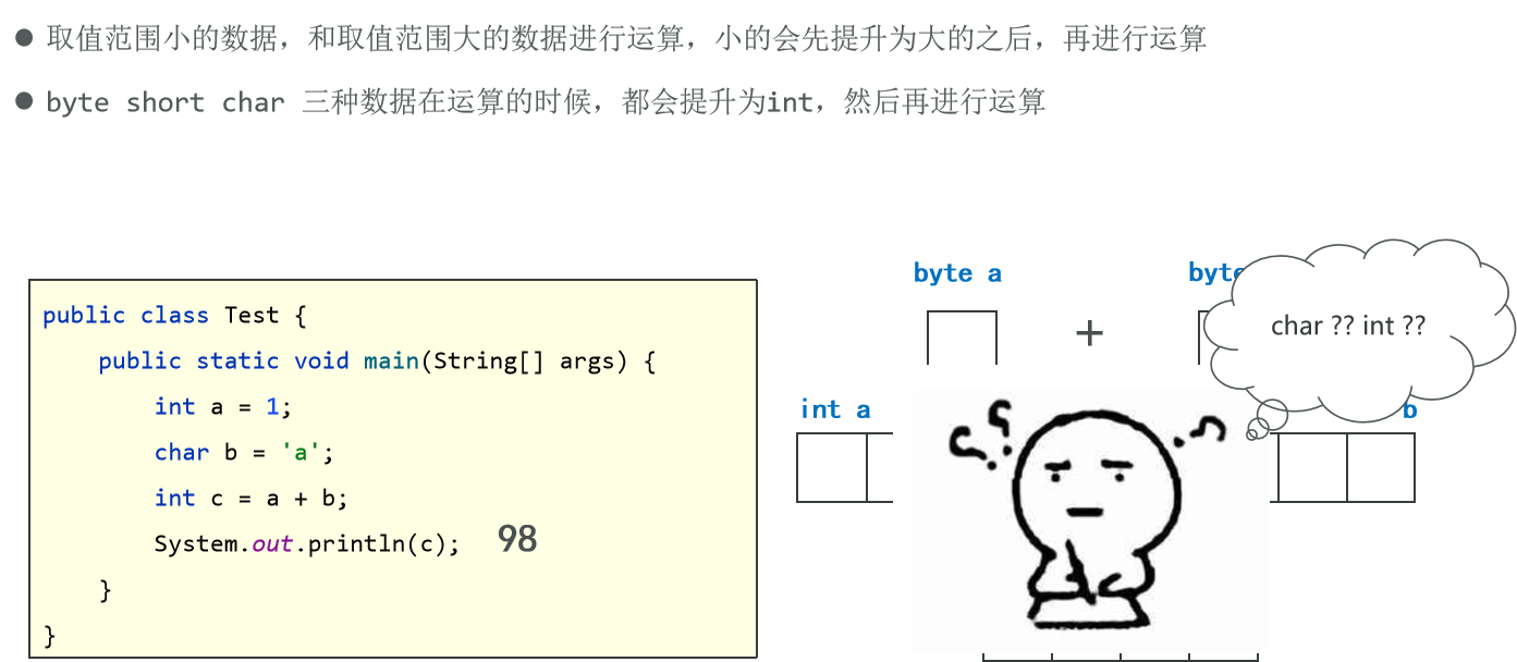 说明:这句代码不会报错,因为 Java 存在 "字面量优化机制":编译阶段(javac)会直接计算3+4的结果(7),而 7 在 byte 类型的取值范围(-128~127)内,因此编译后字节码等价于byte b = 7;。