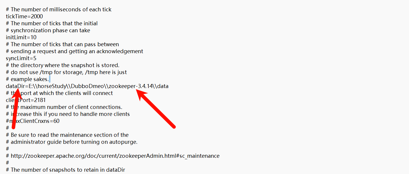 其中的dataDir目录:对于data目录 主要路径转义路径符用\\ 或者 /