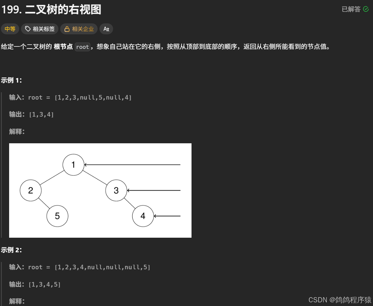 只需要拿每一层的最后一个节点即可,我们借助队列层序遍历二叉树即可。