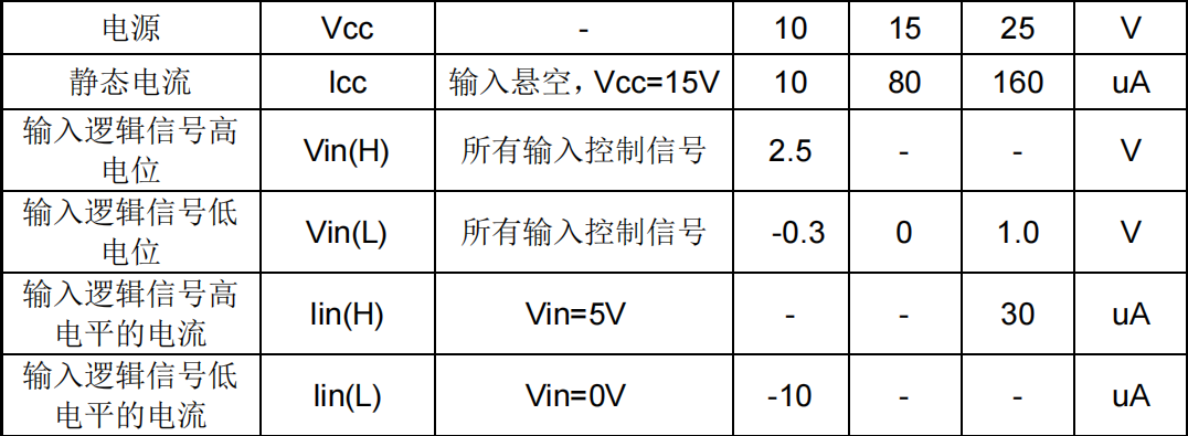 - 静态电流(ICC) 典型 80μA(VCC=15V,输入悬空)