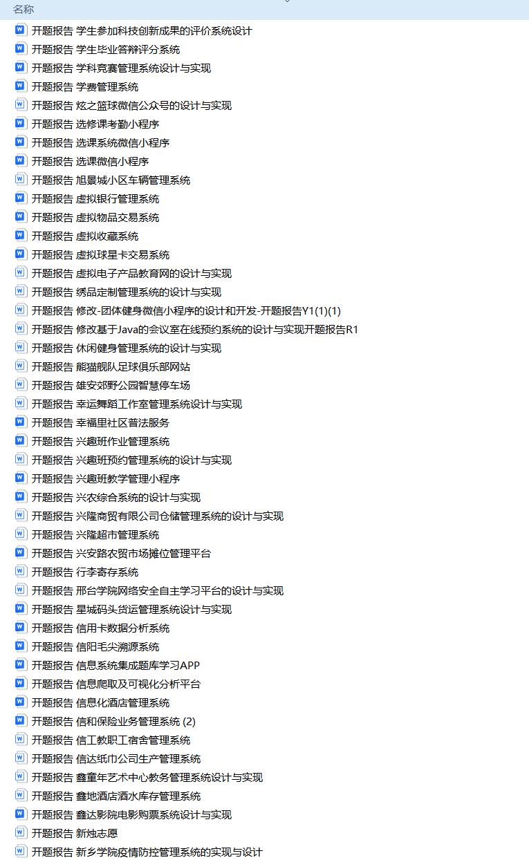 以上是H同学的毕业设计答辩过程,如果你现在还没有参加答辩,还是开题阶段,已经选好了题目不知道怎么写开题报告,可以下面找找有没有自己符合自己题目的开题报告内容,列表中的开题报告都是往届真实的开题报告可参考