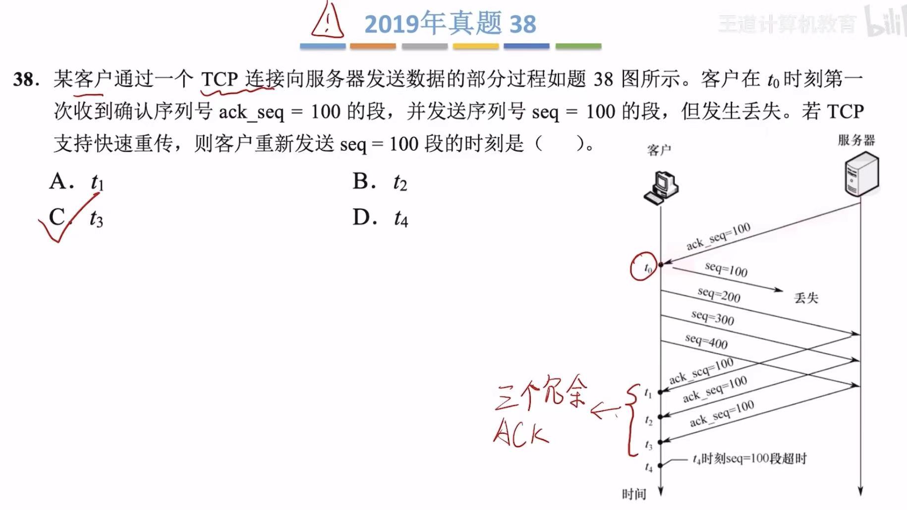 在第四个确认号相同的时刻立即重传:t3