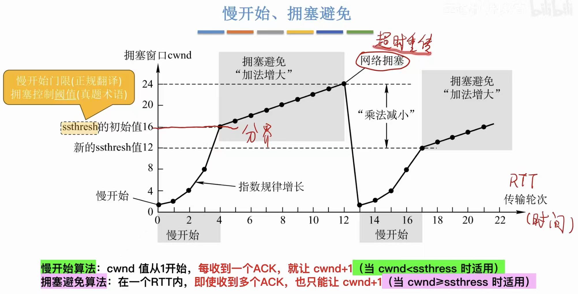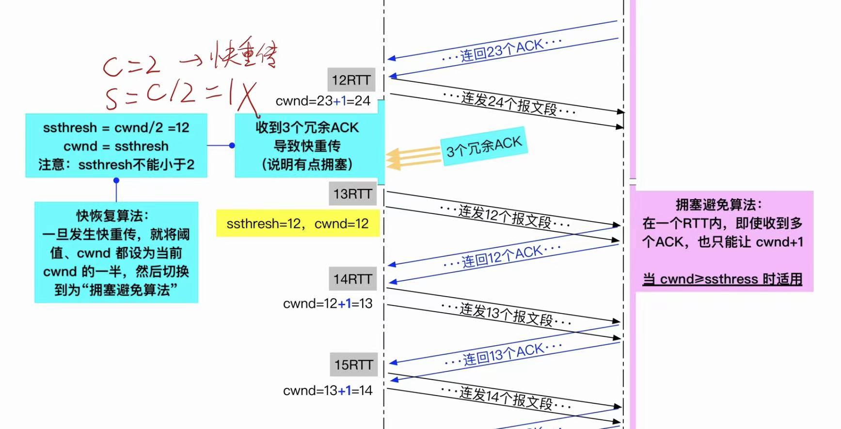 含义 :在拥塞避免阶段,每经过一个 RTT,cwnd += 1