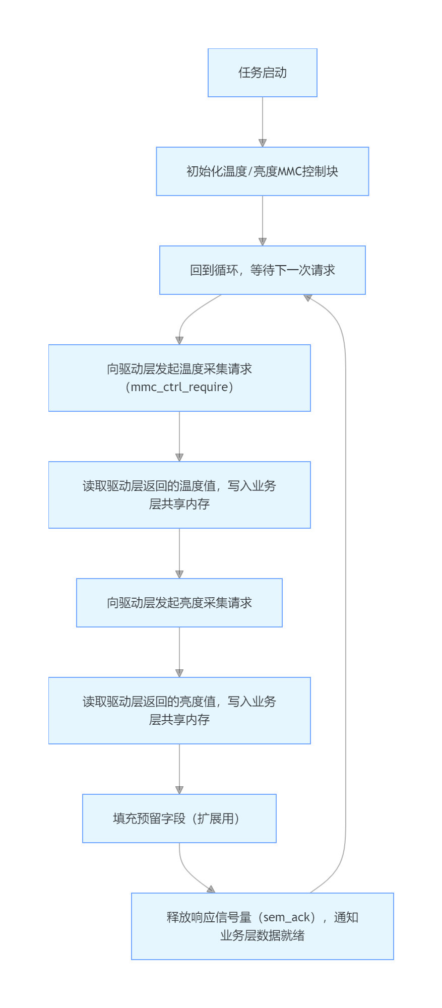 核心作用:响应顶层业务的 "数据采集请求",调用底层采集驱动获取温度 / 亮度数据,返回给业务层。