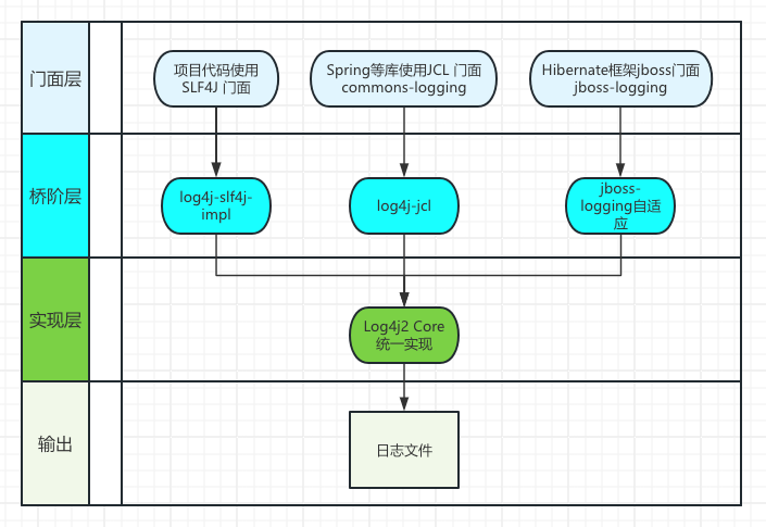 - 其他:如 JUL、Log4j 1.x,需要通过桥接器重定向(见下文)。