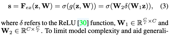 接下来,我们分析 SE 模块所引入的额外参数量。这些参数全部来自于门控机制中的两个全连接层,占整个网络参数量的比例较小。更具体地,额外参数的数量可表示为: