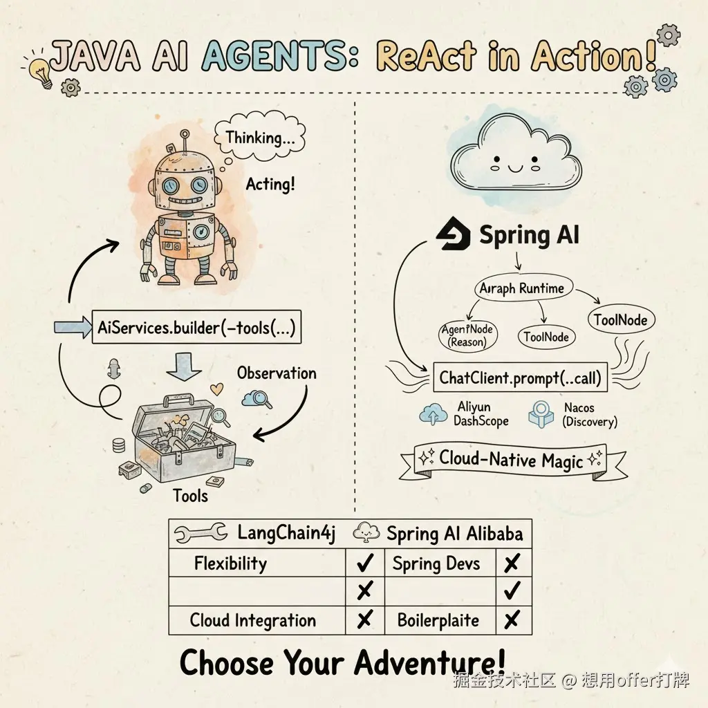 | 推荐场景 | 复杂的、非 Spring 环境的多 Agent 协作 | 现有的 Java 微服务系统增加 AI 能力 |