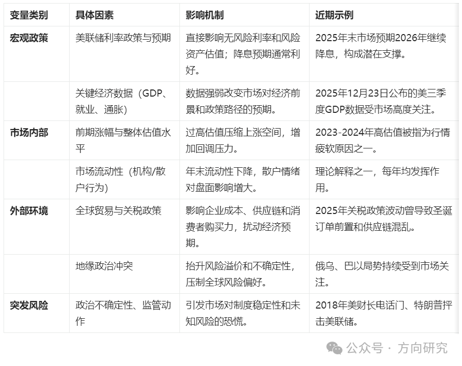 圣诞行情的最终表现,是季节性规律与当期宏观微观力量博弈的结果。以下因素扮演着关键角色: