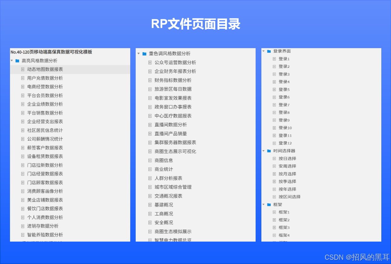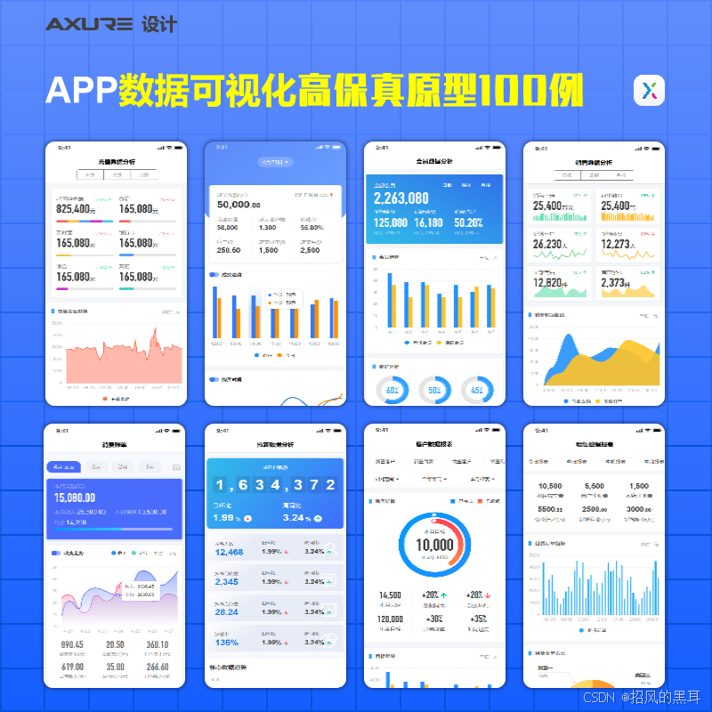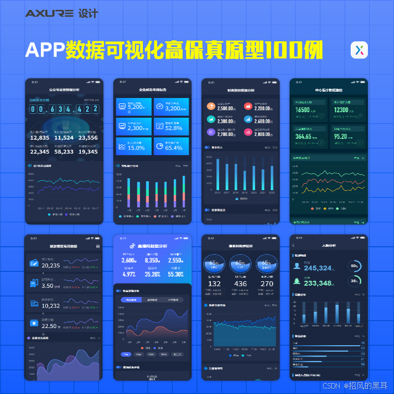 在移动应用蓬勃发展的当下,数据可视化已成为移动端应用传递信息、辅助决策的关键手段。无论是企业实时监控业务指标,政府展示民生数据,电商分析销售趋势,还是医疗领域跟踪患者信息,都离不开直观、高效的数据可视化呈现。然而,设计一款优质的移动端数据可视化应用并非易事,需要耗费大量的时间和精力进行界面设计、交互规划与功能开发。今天,就为大家带来一款能够极大提升设计效率的宝藏资源------移动端数据可视化高保真原型模板(基于 Axure9 制作,同时支持 Axure10 与 11 版本)。