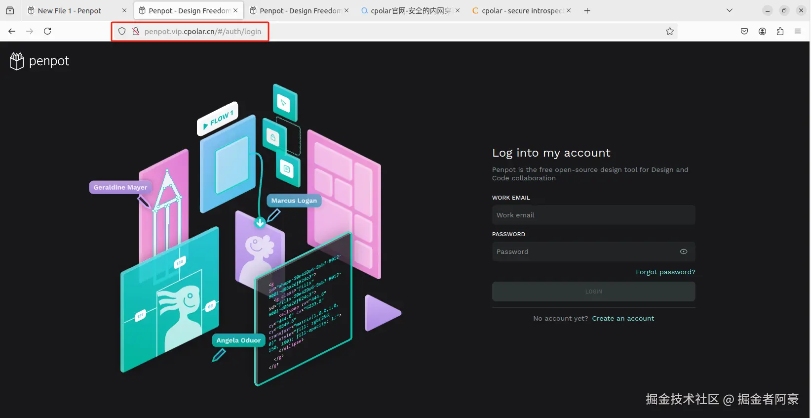 为什么这个组合能带来设计协作革命?打个比方,Penpot 就像一张 "无限大的数字画布",所有设计师都能在上面画画。cpolar 相当于给这张画布配了 "全球投影功能",让世界各地的人都能看到并添加自己的创意。整个过程不需要你懂任何代码,注册账号即可开始协作 ------ 比使用普通设计软件还简单!