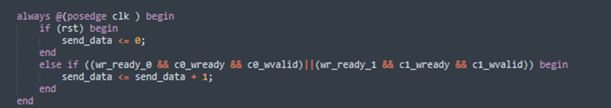 产生递增数据,控制信号已经将DDR_0的DDR_1分开,不会重叠,所以可以直接使用DDR_0和DDR_1的数据有效信号产生连续的递增数据。