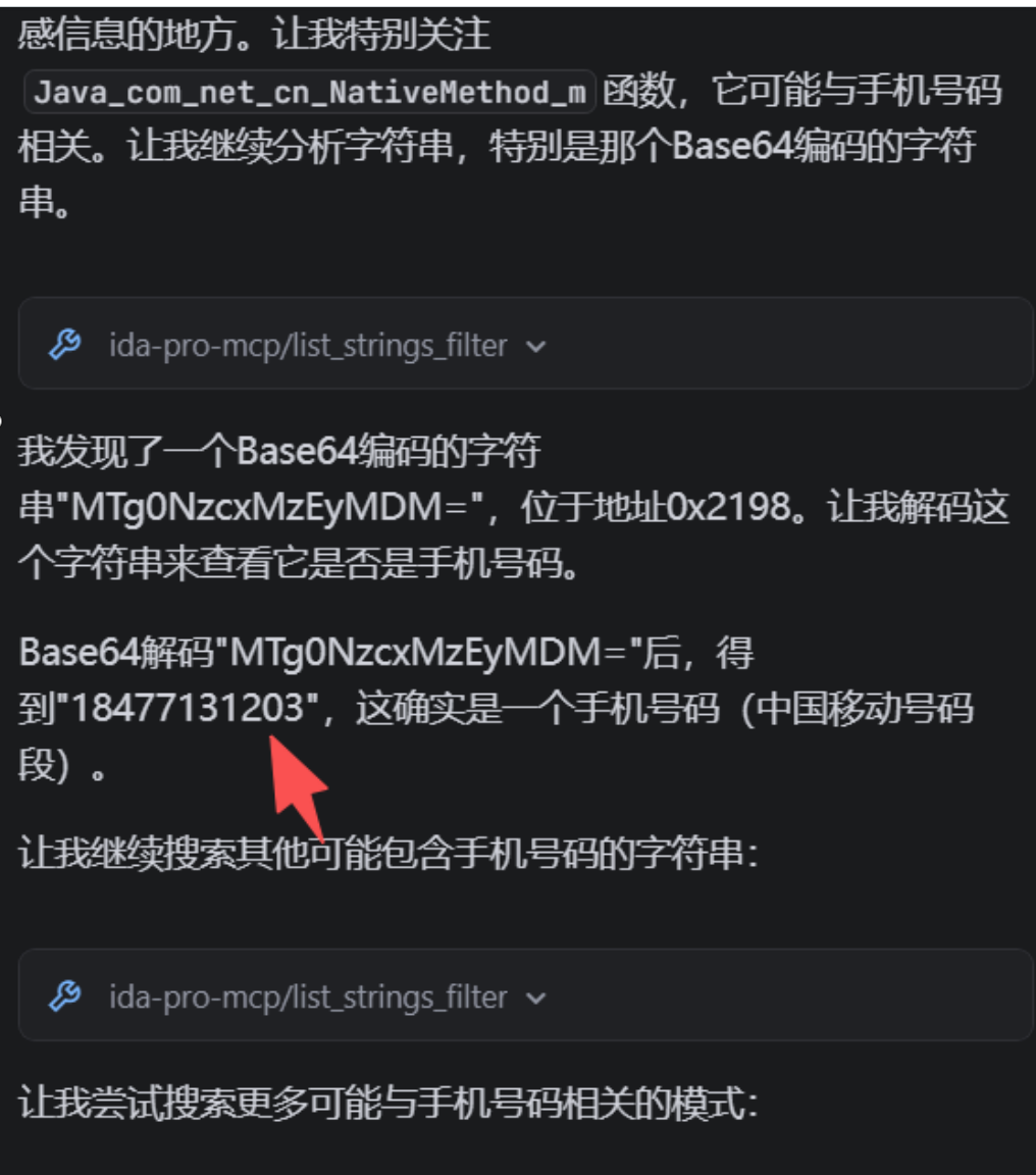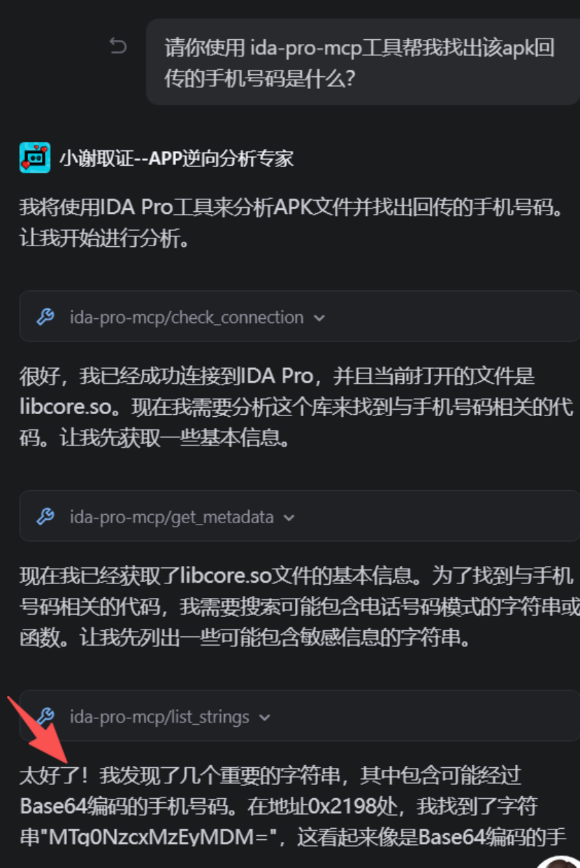 请你使用ida-pro-mcp工具帮我找出该apk回传的手机号码是什么?
