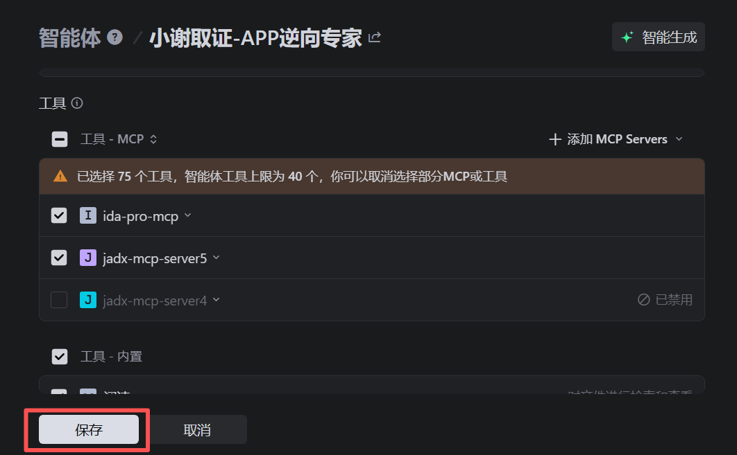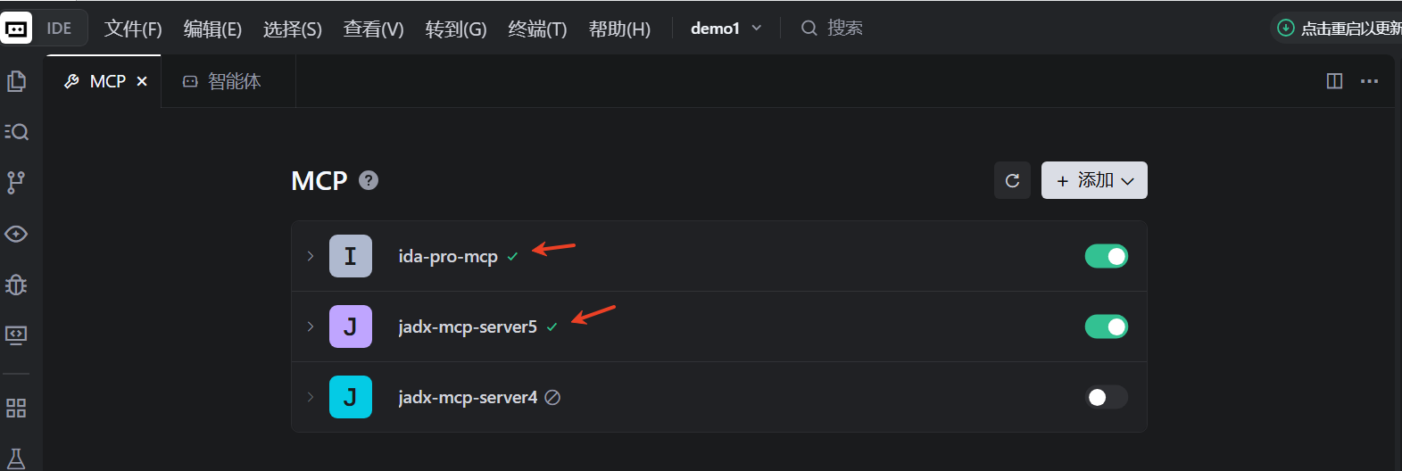 本期所使用到的智能体是jadx-mcp-server和ida pro mcp。也就是利用jadx的工具对APP进行反编译后,就可以使用自然语言与Trae进行交互,就可以让Trae帮你读懂里面的代码。不仅如此,还可以定位加密函数,但有些加密存储在本地库文件中的,无法直接从Java代码中直接获取,就可以利用ida的mcp工具进行查看。