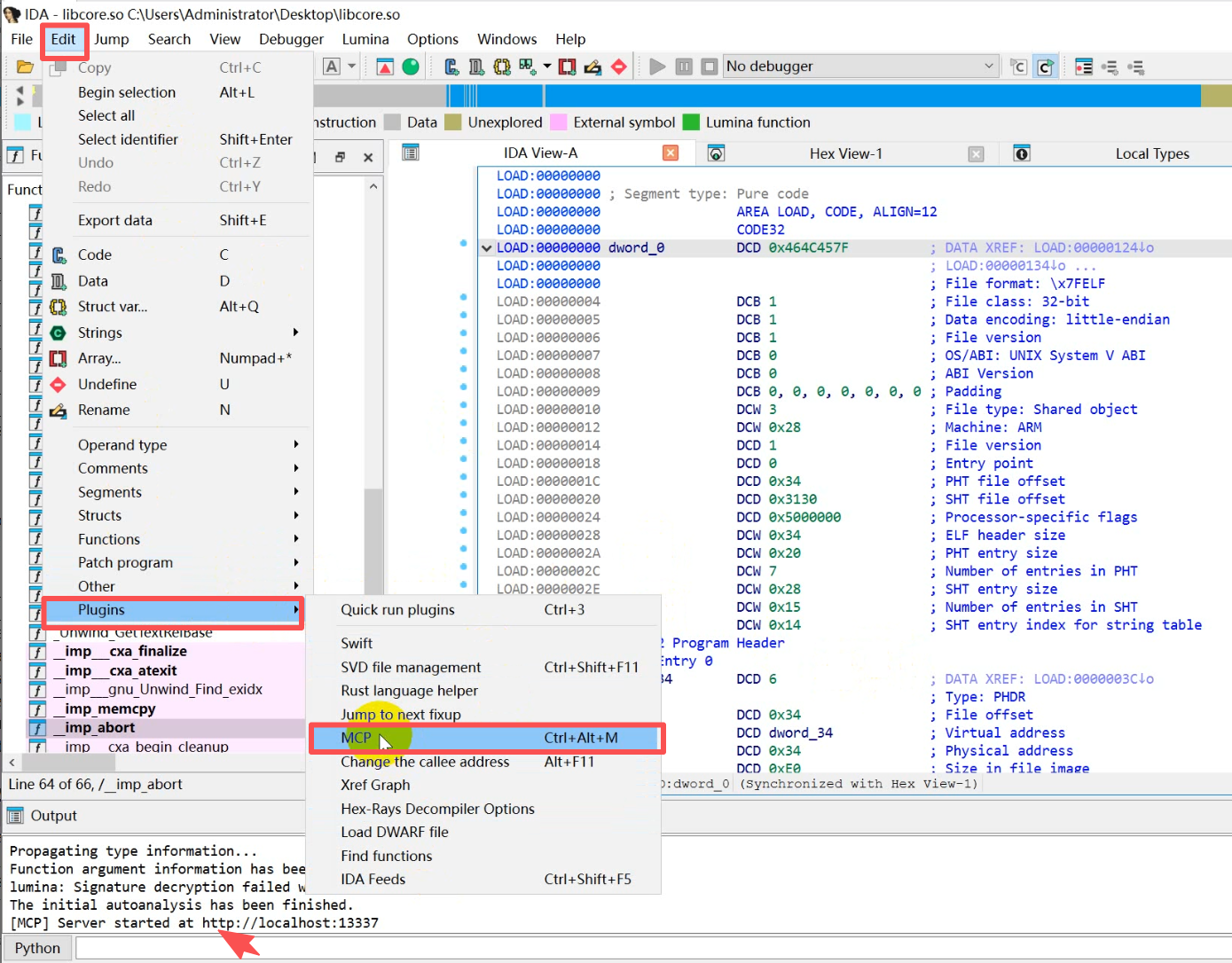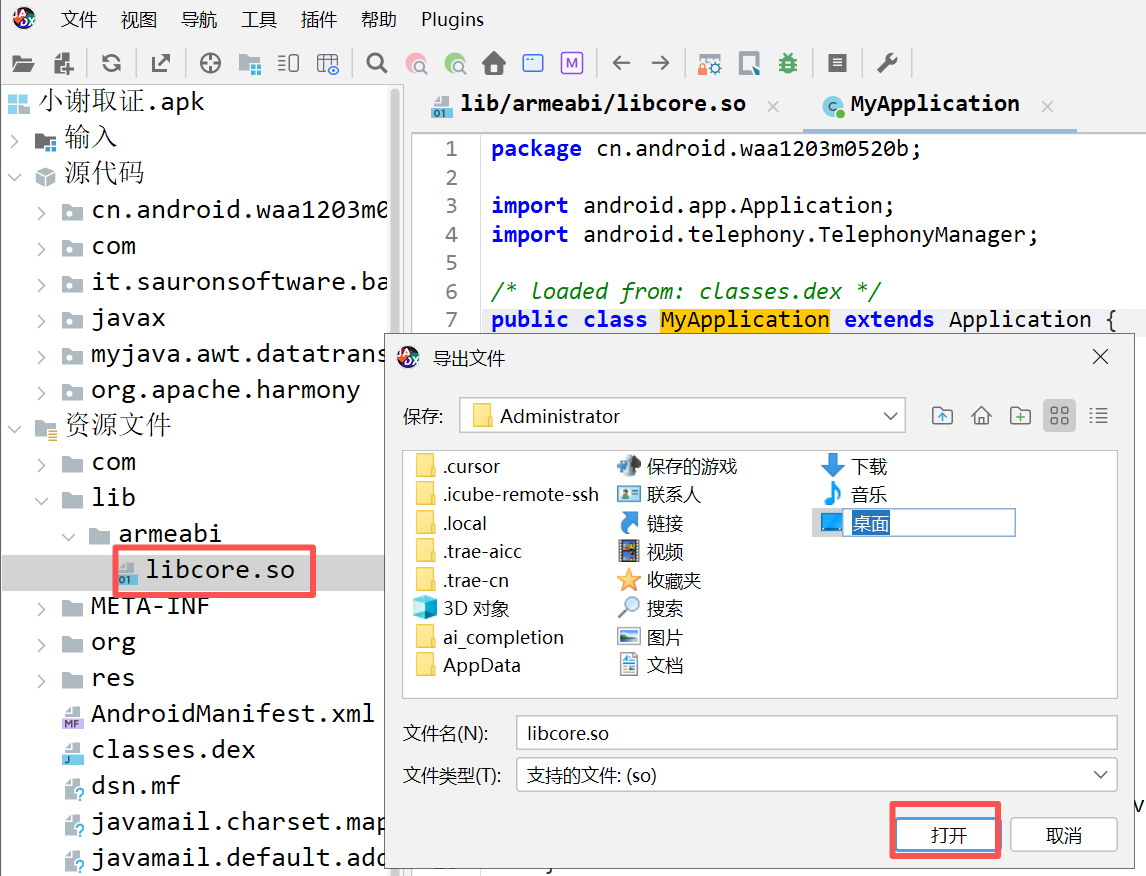 所以根据Trae的提示,我们将libcore.so文件导出,然后用IDA打开,再使用自然语言跟Trae进行交互。