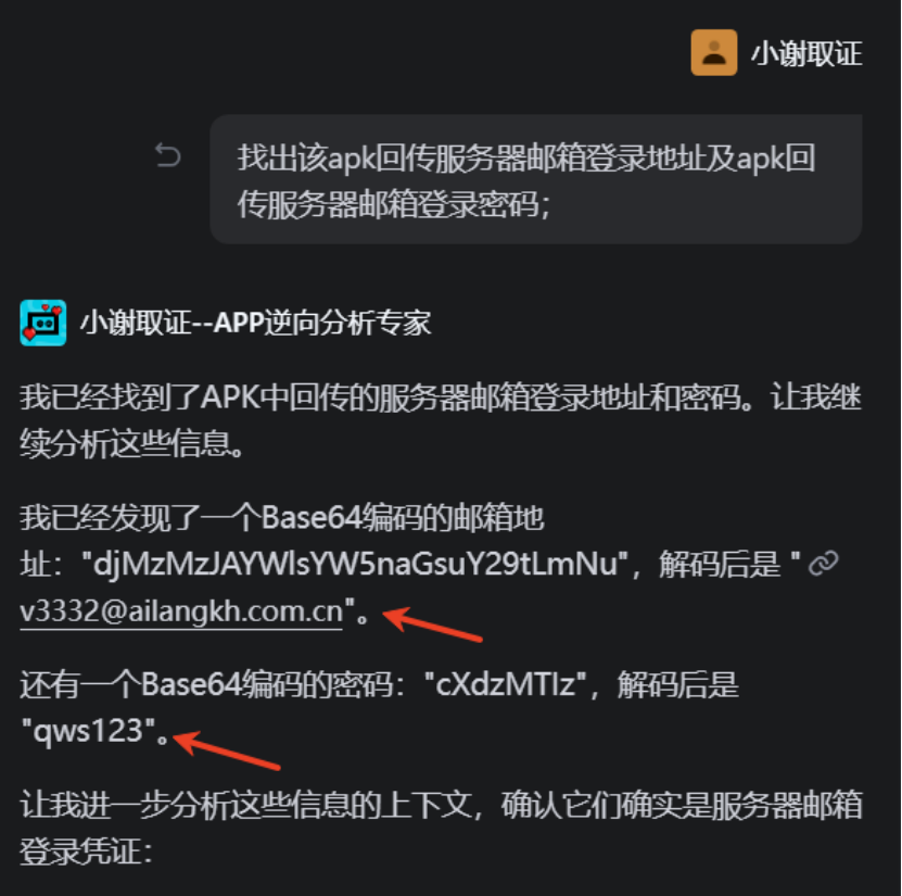 找出该apk回传服务器邮箱登录地址及apk回传服务器邮箱登录密码;