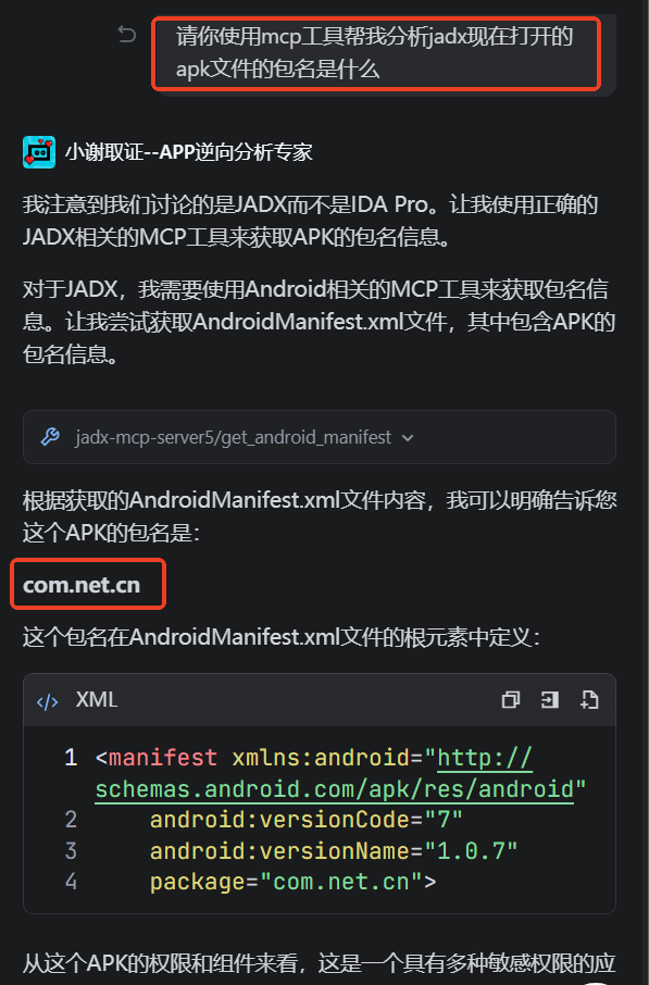 请你使用mcp工具帮我分析jadx现在打开的apk文件的包名是什么