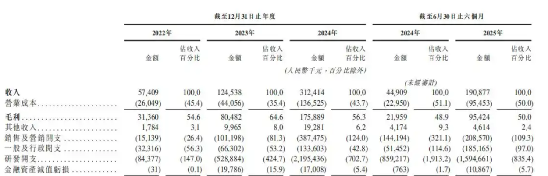 招股书显示,2022年至2024年,智谱营收分别为5740万元、1.25亿元和3.12亿元,年均复合增长率超130%;2025年上半年营收进一步增至1.91亿元,较上年同期的4490万元同比激增325.39%。