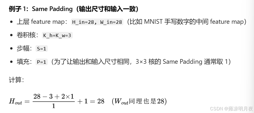 x = torch.randn(1, C_in, H_in, W_in) # 模拟输入(1×3×28×28)