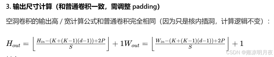 padding=(K + (K-1)*(d-1) - 1)//2, # Same Padding(适配空洞率d)