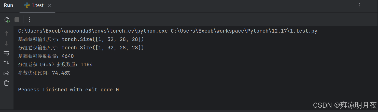 print(f"普通卷积参数数量:{base_params}") # 3×16×3×3 + 16 = 448 + 16 = 464