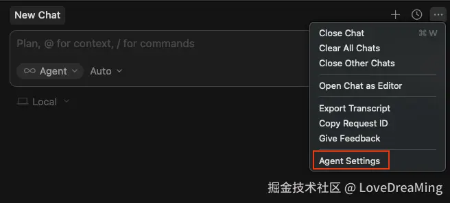 - 点击对话窗口的右上角的三个点,选择Agent Settings
