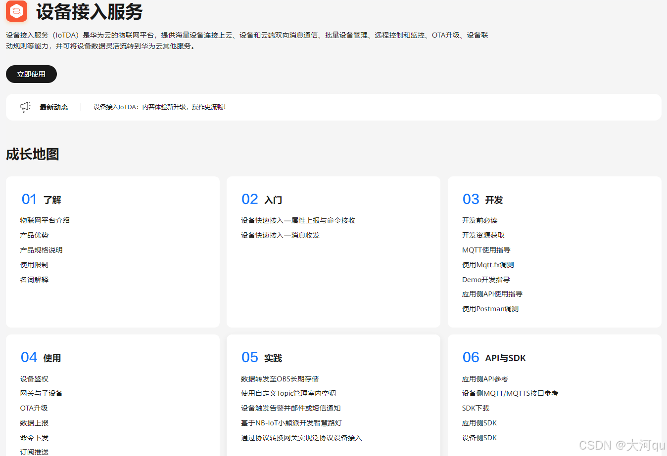 相比于在线文档,我们从官网各处页面下载来的PDF文档往往更新比较滞后,甚至我怀疑有的文档已经没人维护啦。推荐直接阅读 设备接入IoTDA产品文档,又新又全,还有条理,用起来更顺心顺手。