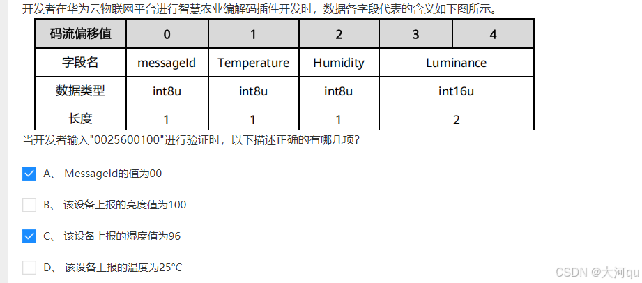 在实际的HCIP-IoT考试中,并没有操作题。但是一些实验过程会以选择题的形式来进行考察,如,