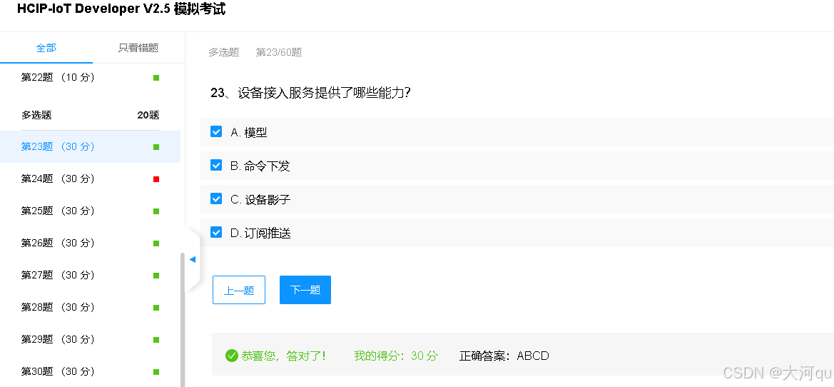 登录考试宝网页或微信小程序,搜索 华为云物联网 HCIP-IoT 人工注解 H52-111 真题2025 ,或者按作者搜索 大河qu。该题库设定了1分钱的价格,可不是为了赚money哈,纯粹为了防止有心之徒随意盗用。大家可以在文章下留言,我可以无偿提供兑换码。