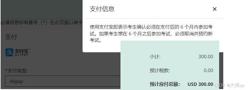点击预约,确认考点信息,然后点击去结账,缴费界面就弹出来了,只要支付宝扫个码就行了。
