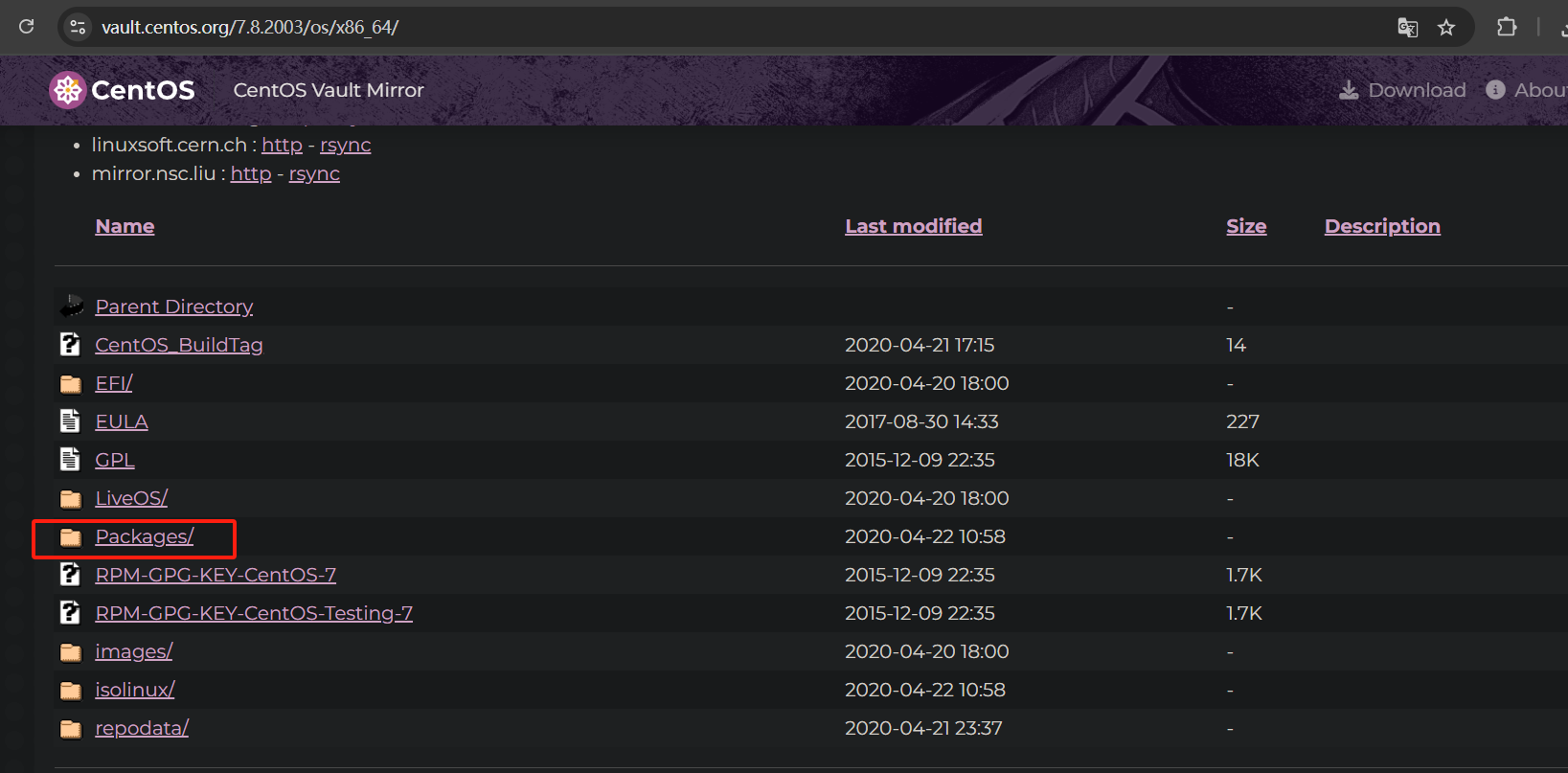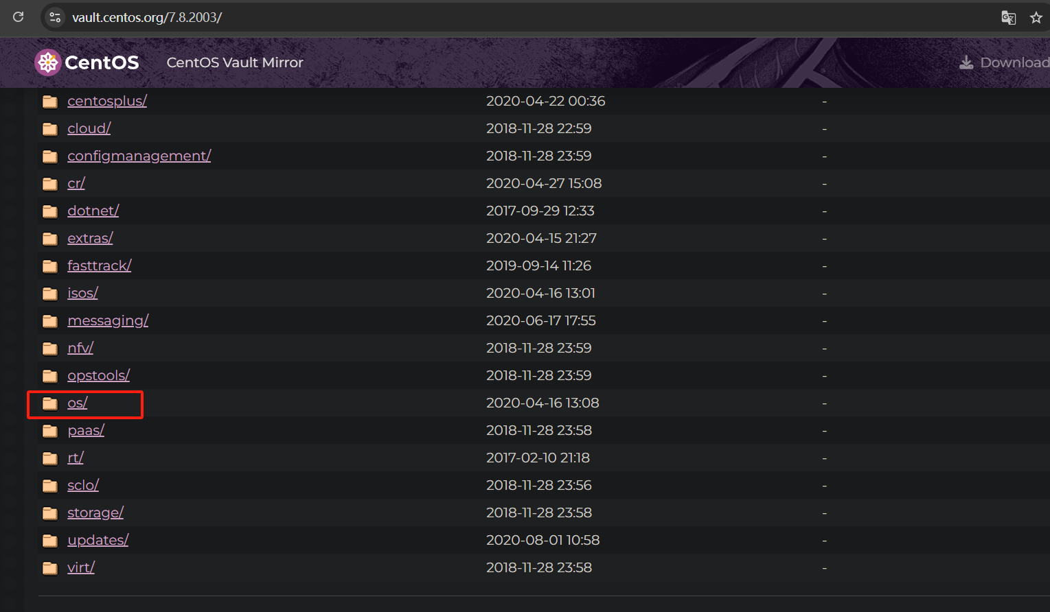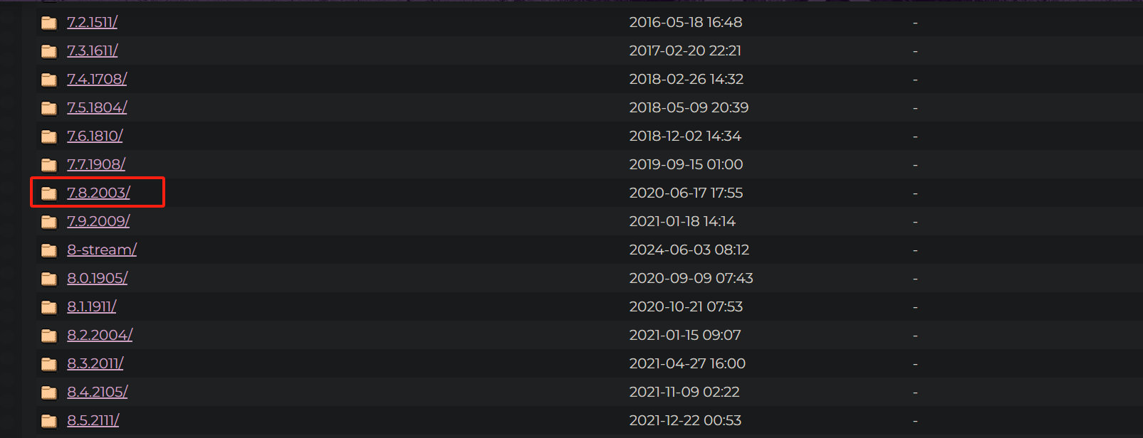 往下拉,找到自己的版本,这里找 7.8.2003 版本