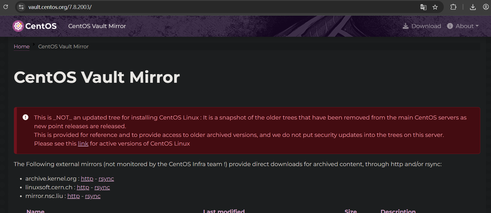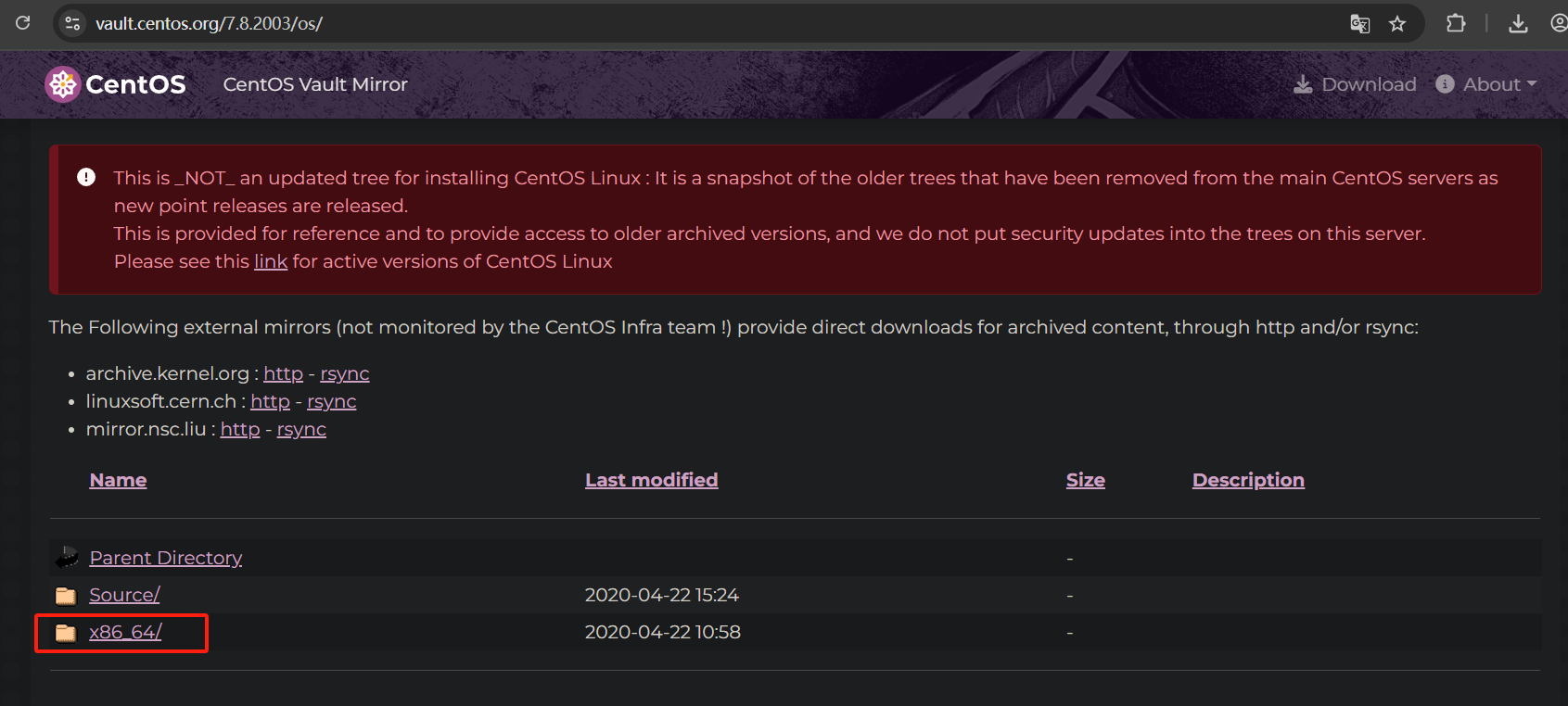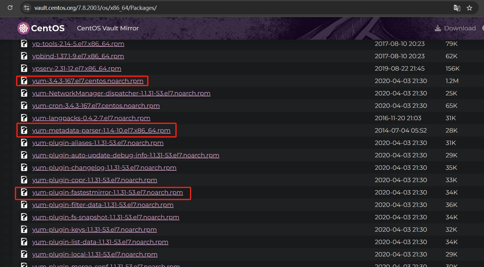 往下拉,找到自己的版本,这里找 7.8.2003 版本