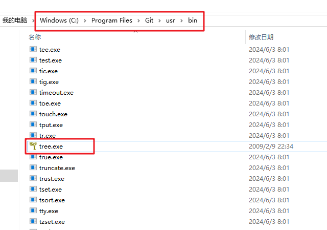 tree.exe文件复制到git安装目录中,例如C:\Program Files\Git\usr\bin中