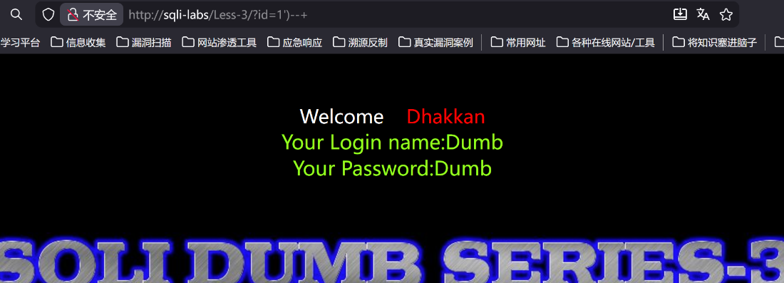 http://sqli-labs/Less-3/?id=1')--+
